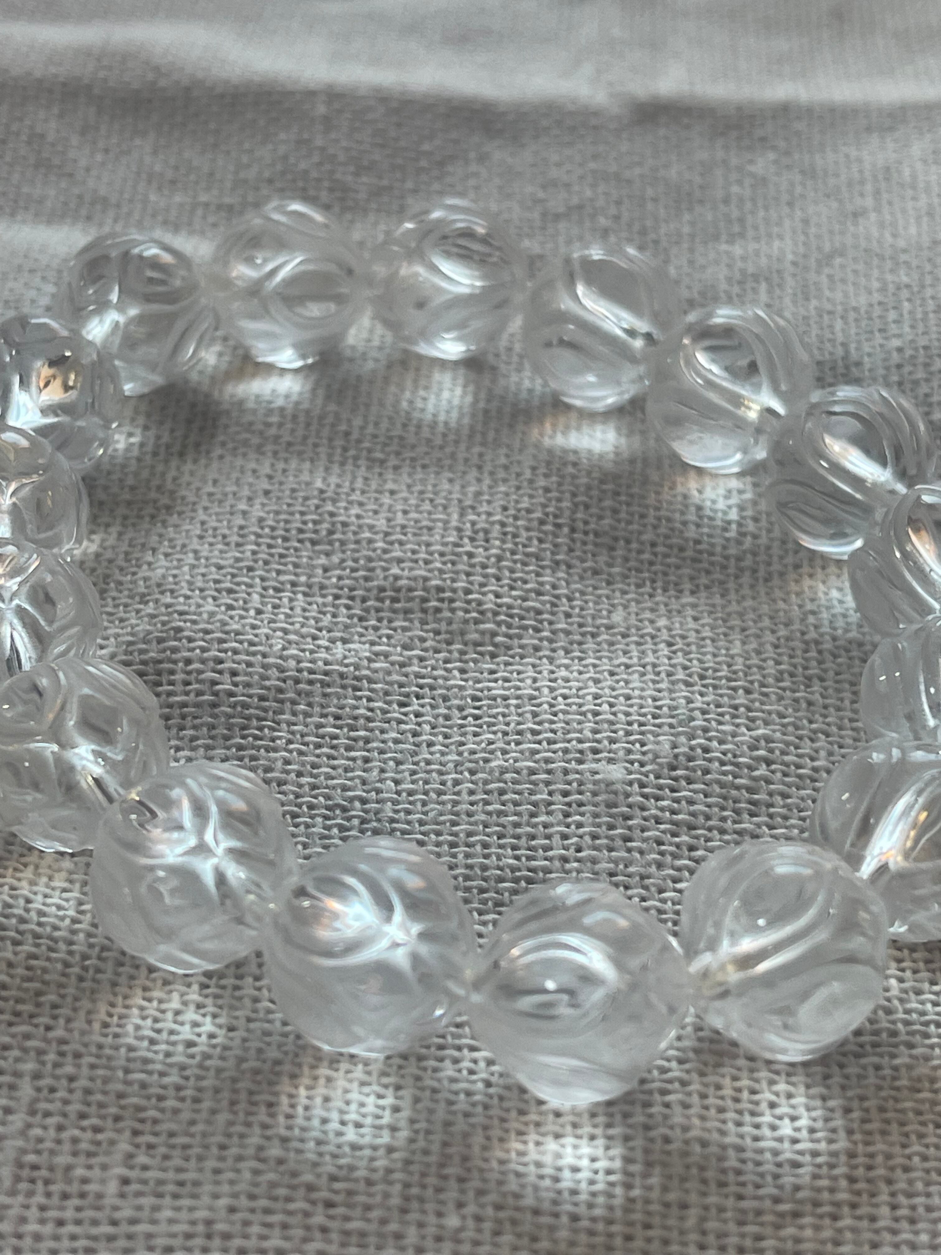 水晶 水晶ブレスレット 蓮彫り水晶 天然石 天然石ブレスレット