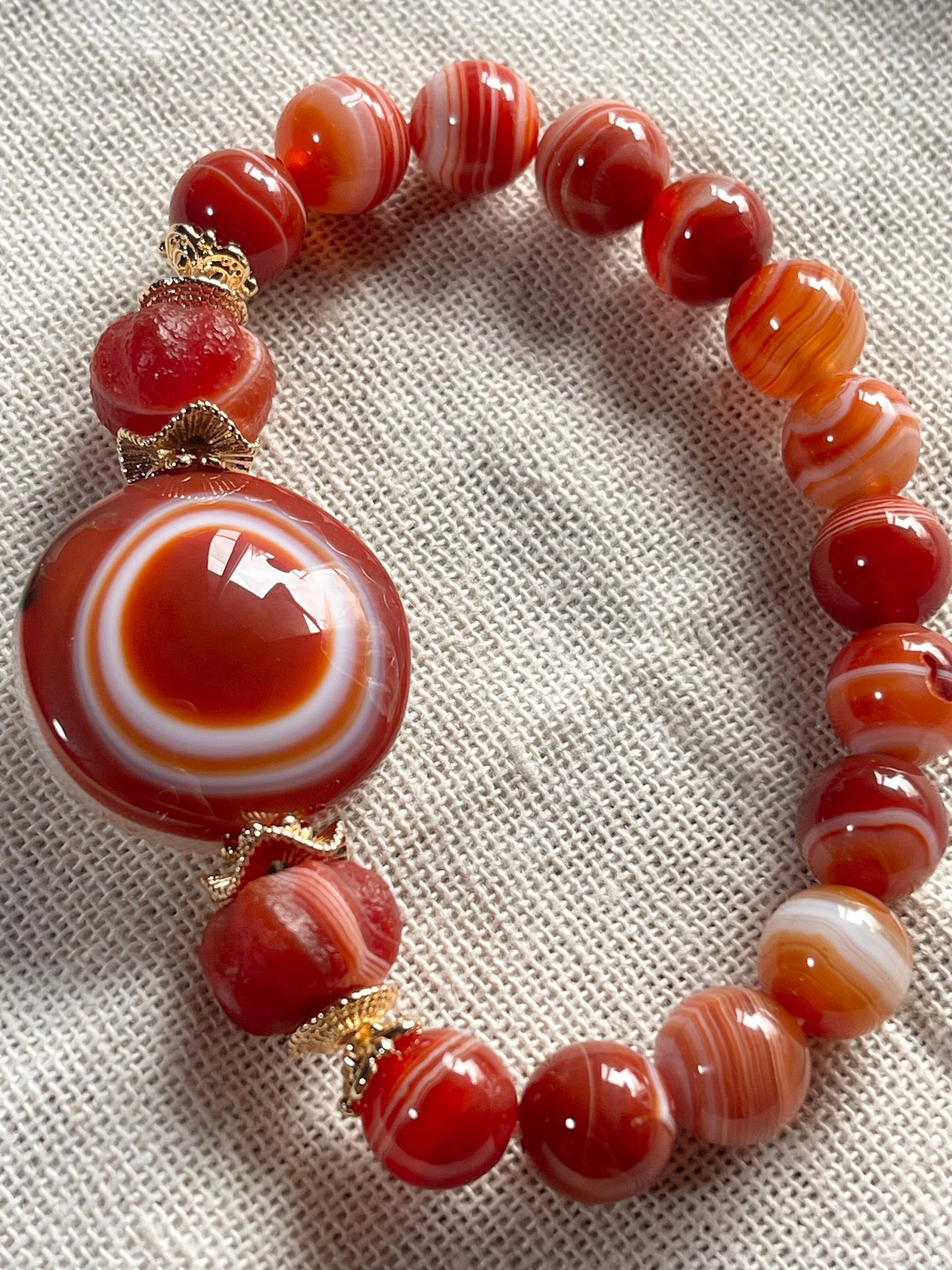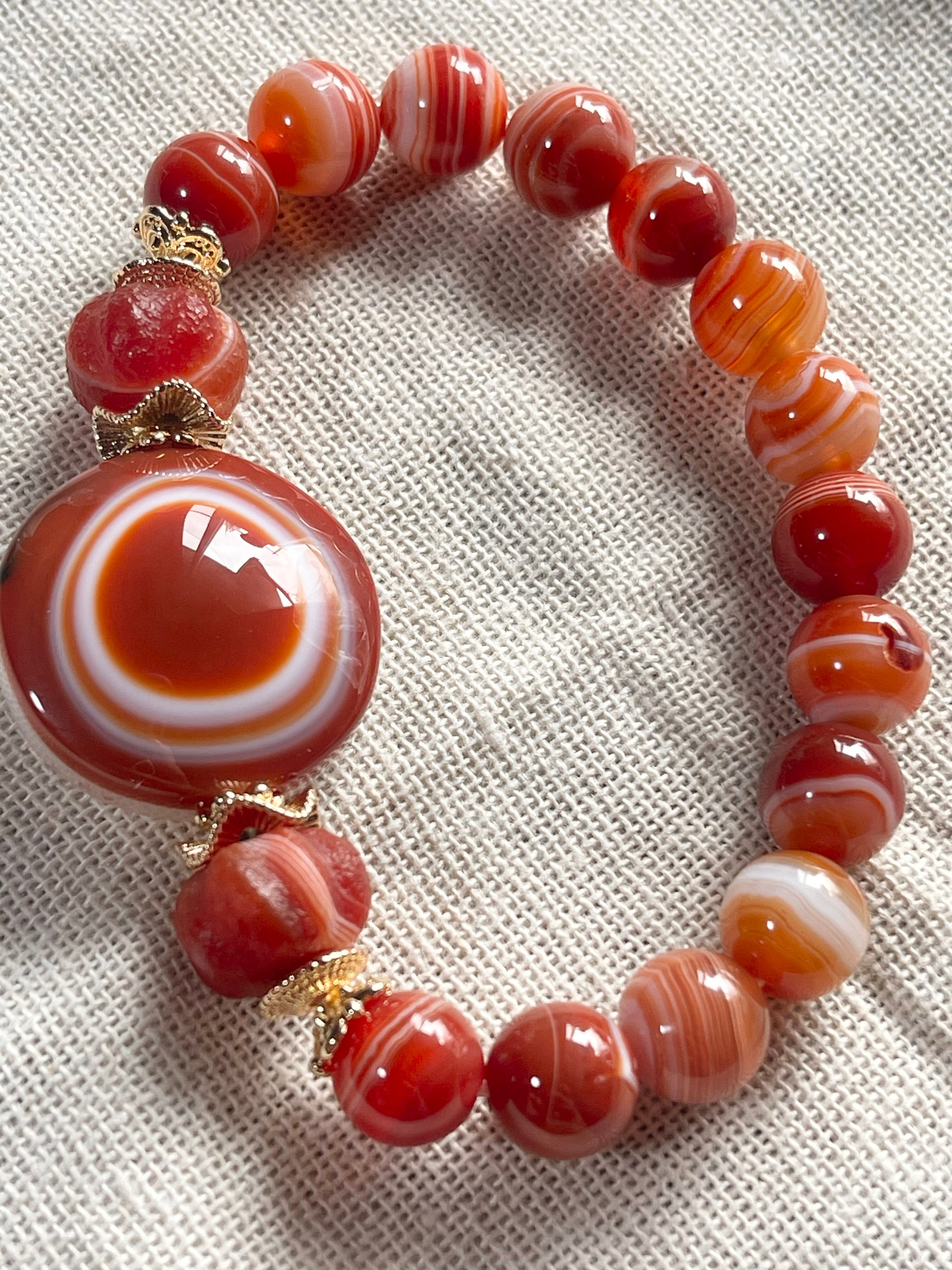 美しい✨ 羊眼板天珠×高品質サードオニキス 色が綺麗です❣️ 天珠ブレスレット