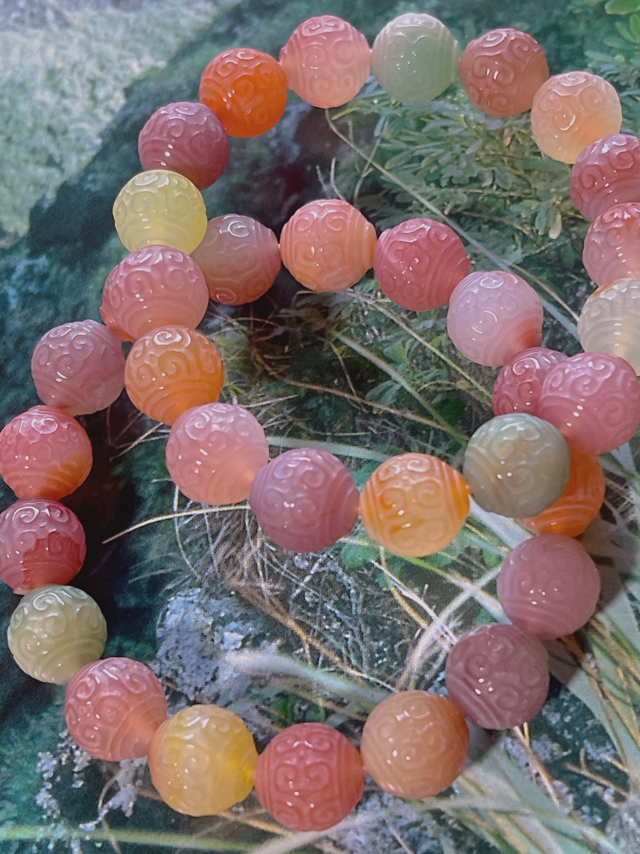 ♥️運気好転 回紋珠 塩源瑪瑙ブレスレット マカロン瑪瑙 天然石ブレスレット パワーストーンブレスレット