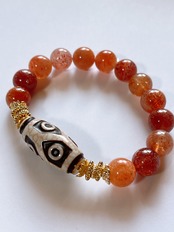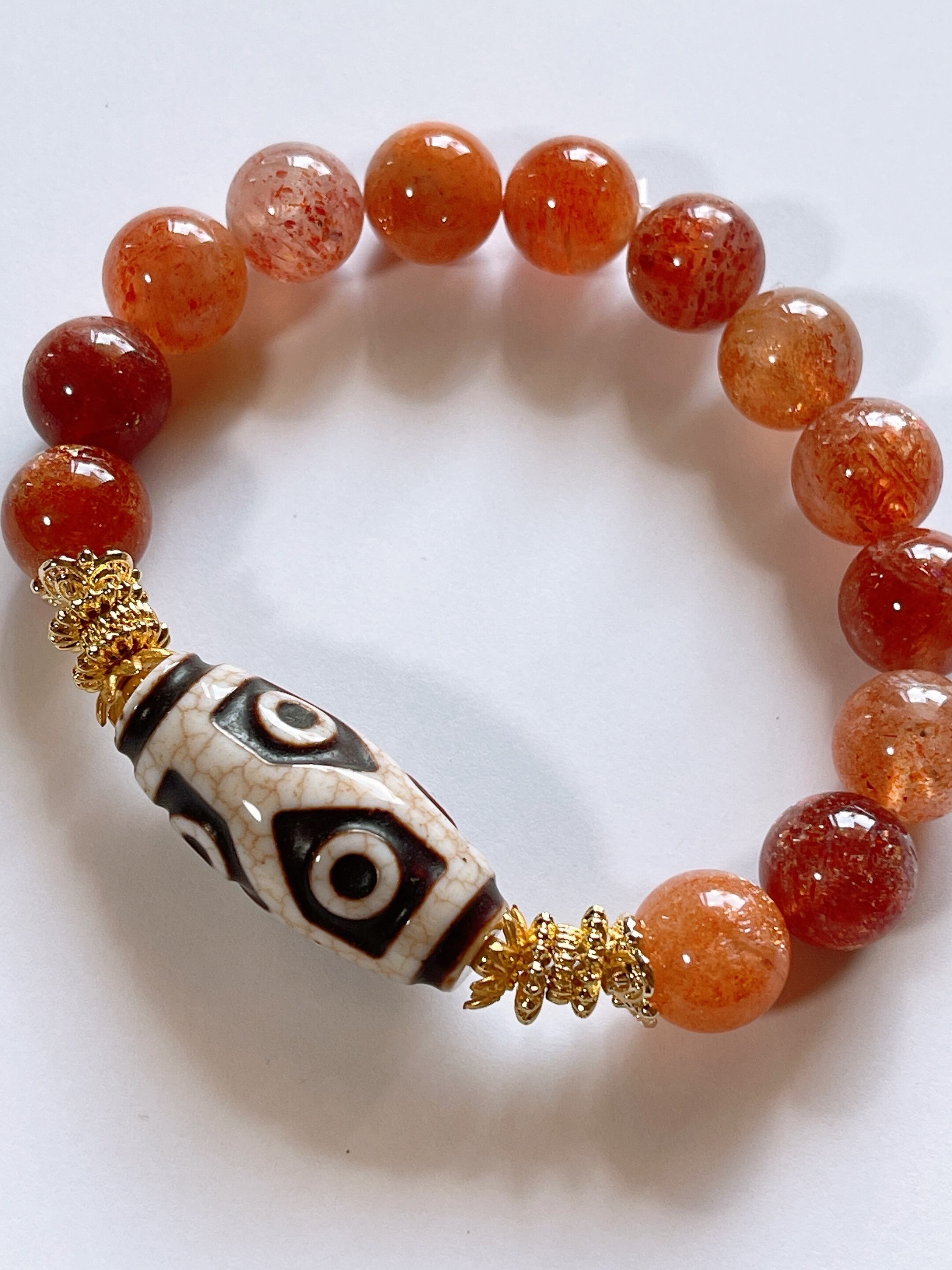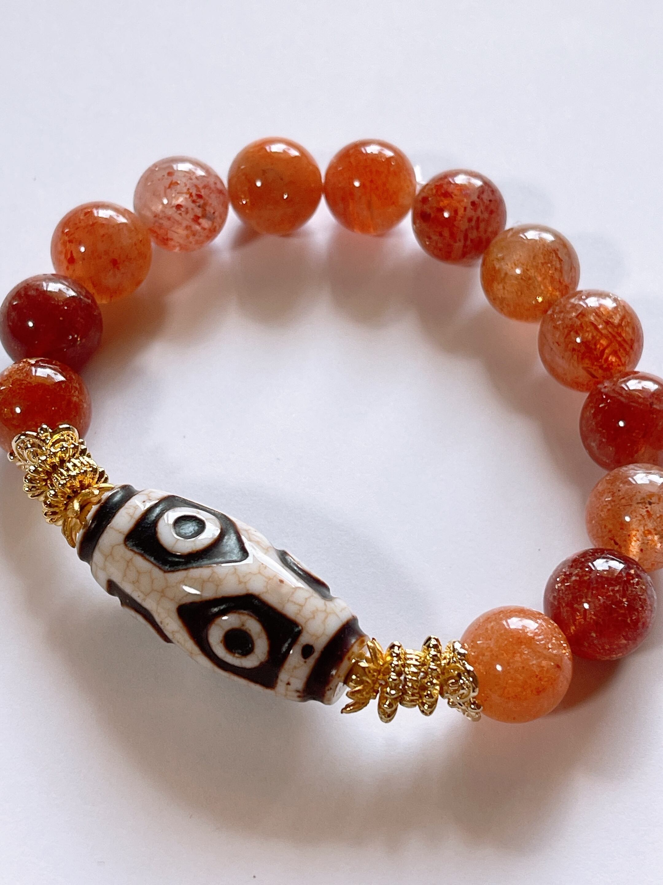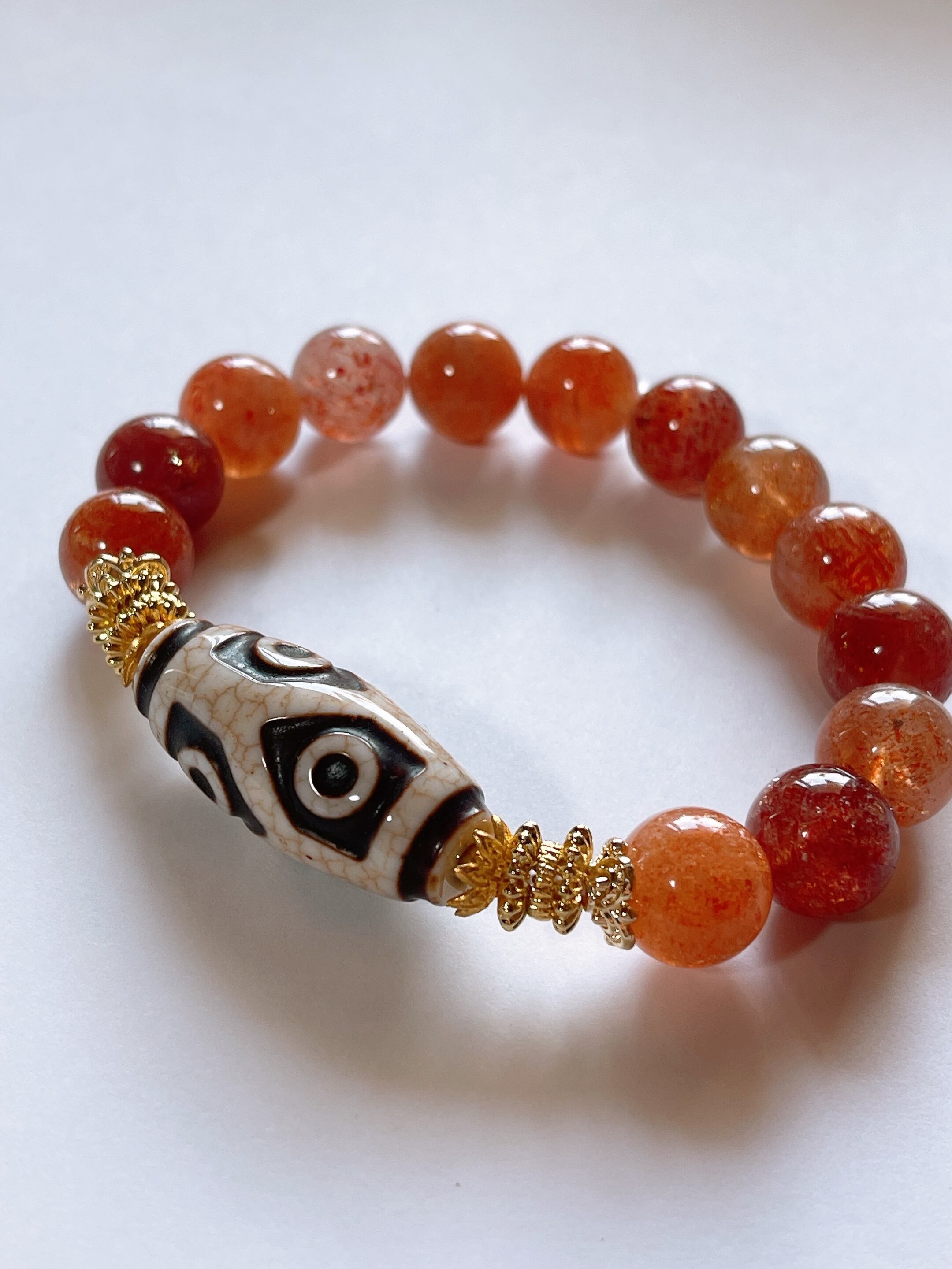 高品質レア天珠 亀甲六眼天珠 火供龍紋天珠 サンストーン