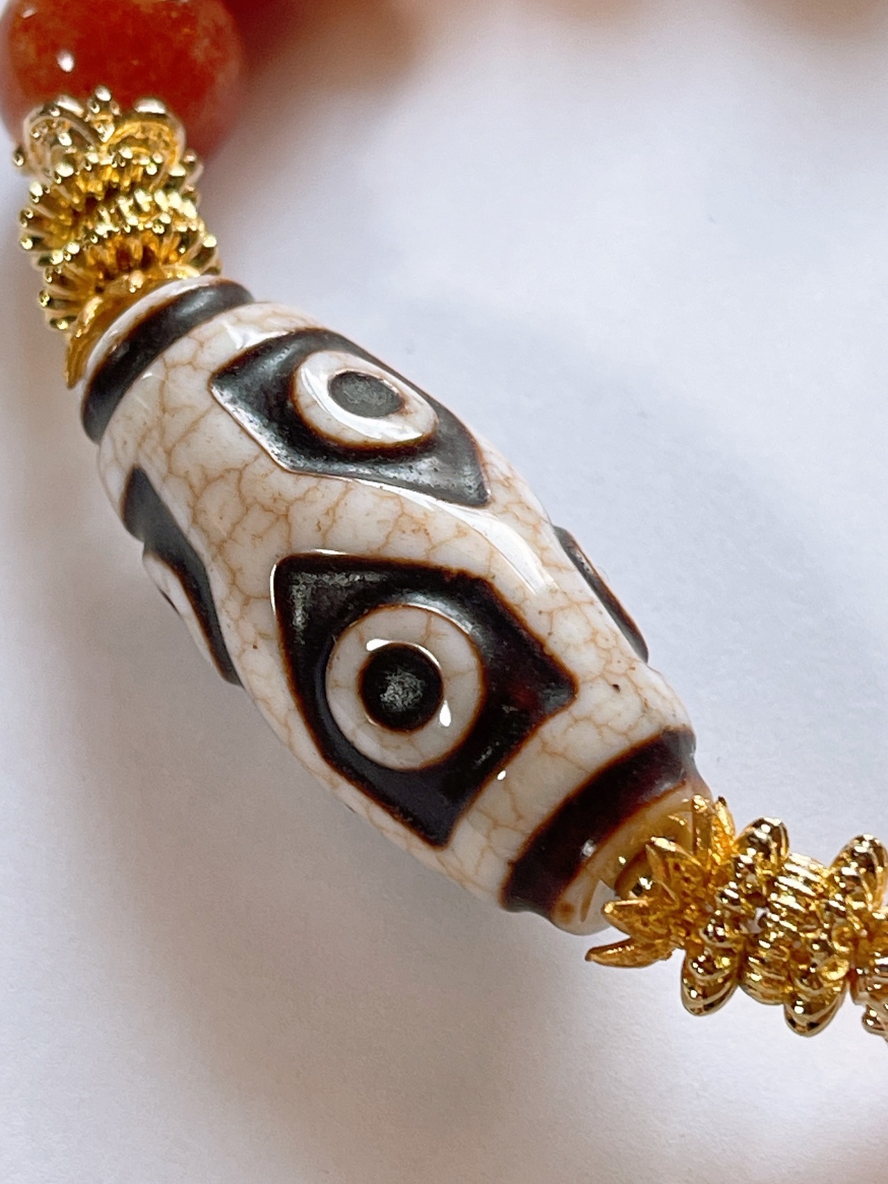 【火供龍紋天珠の 亀甲六眼天珠】を