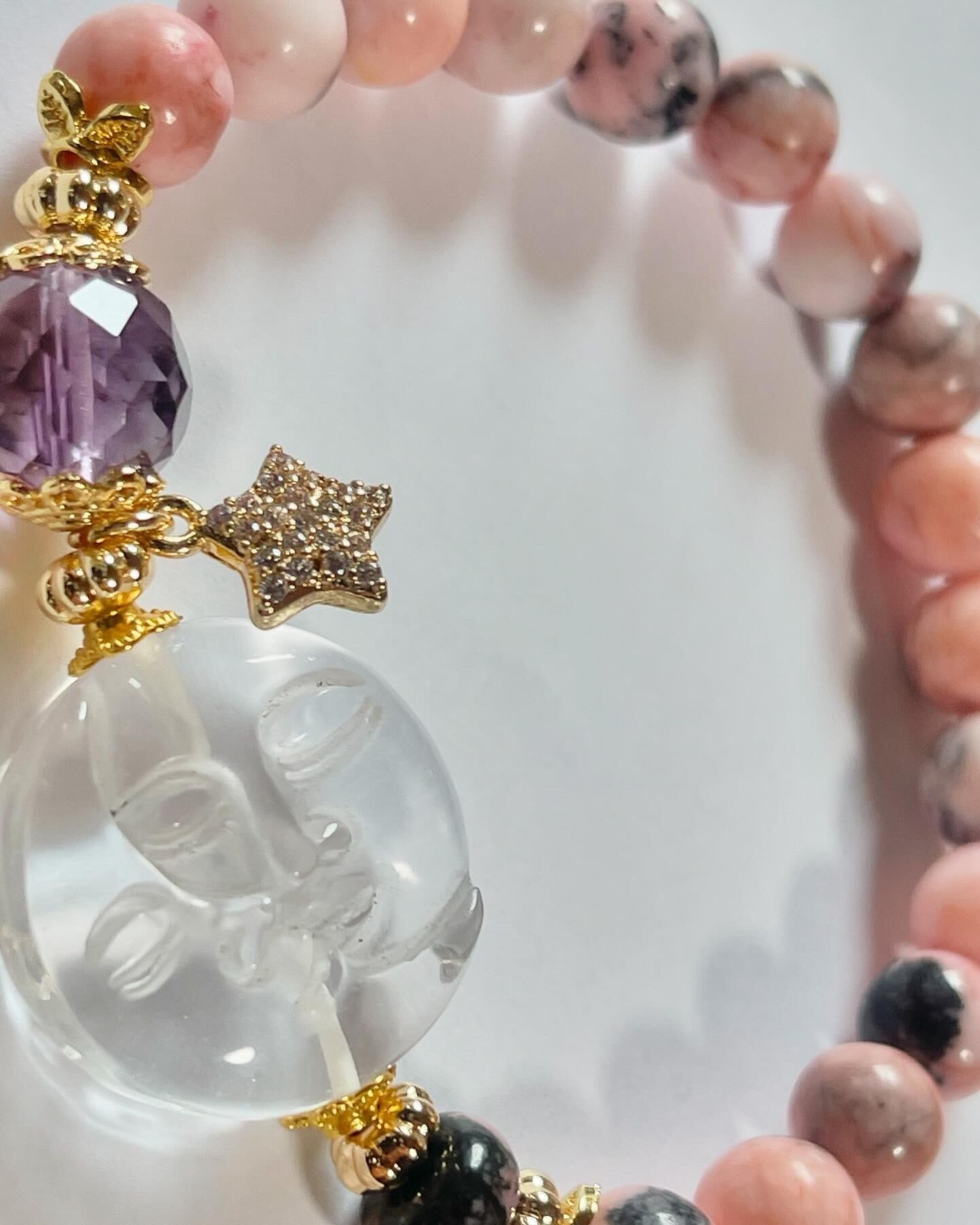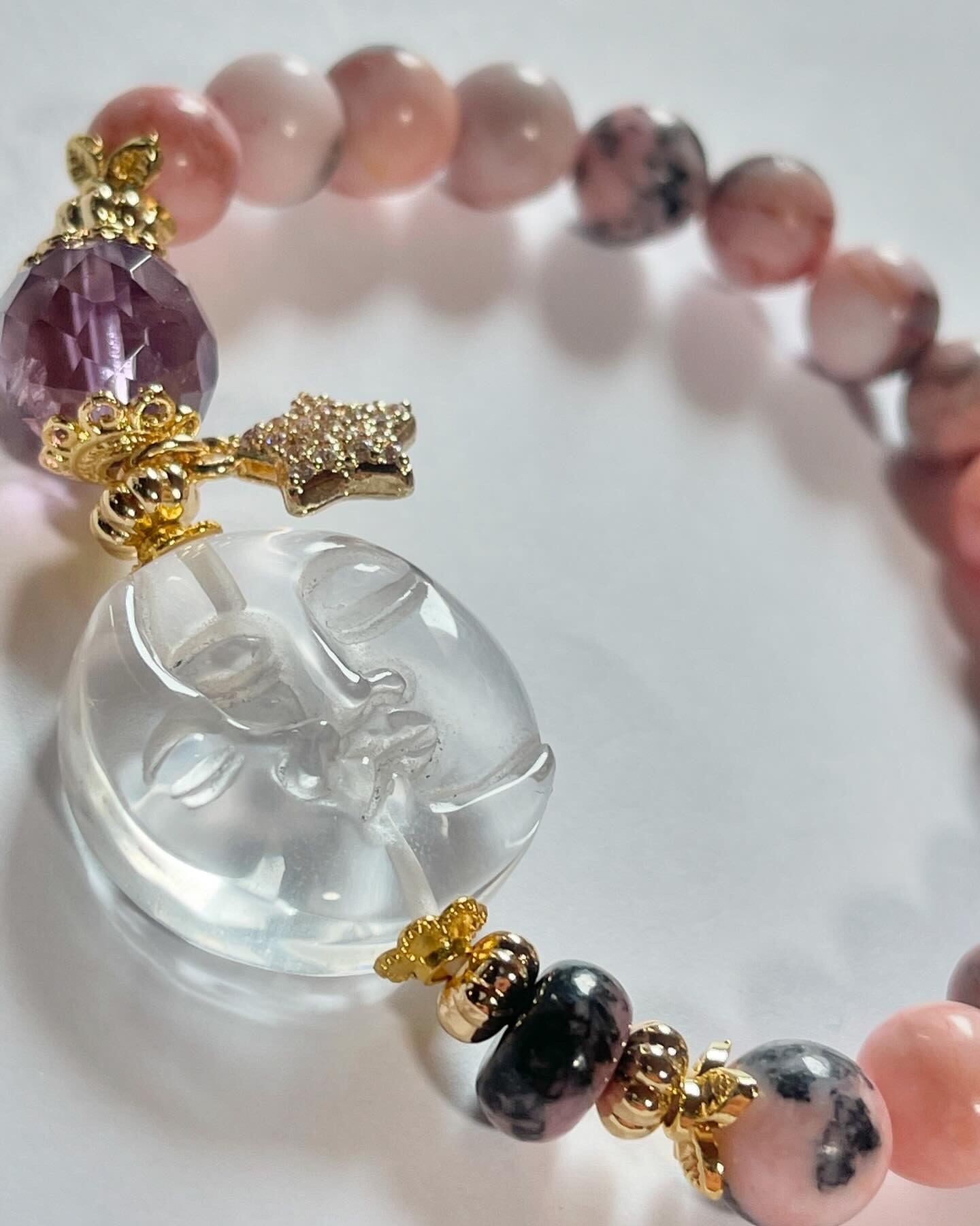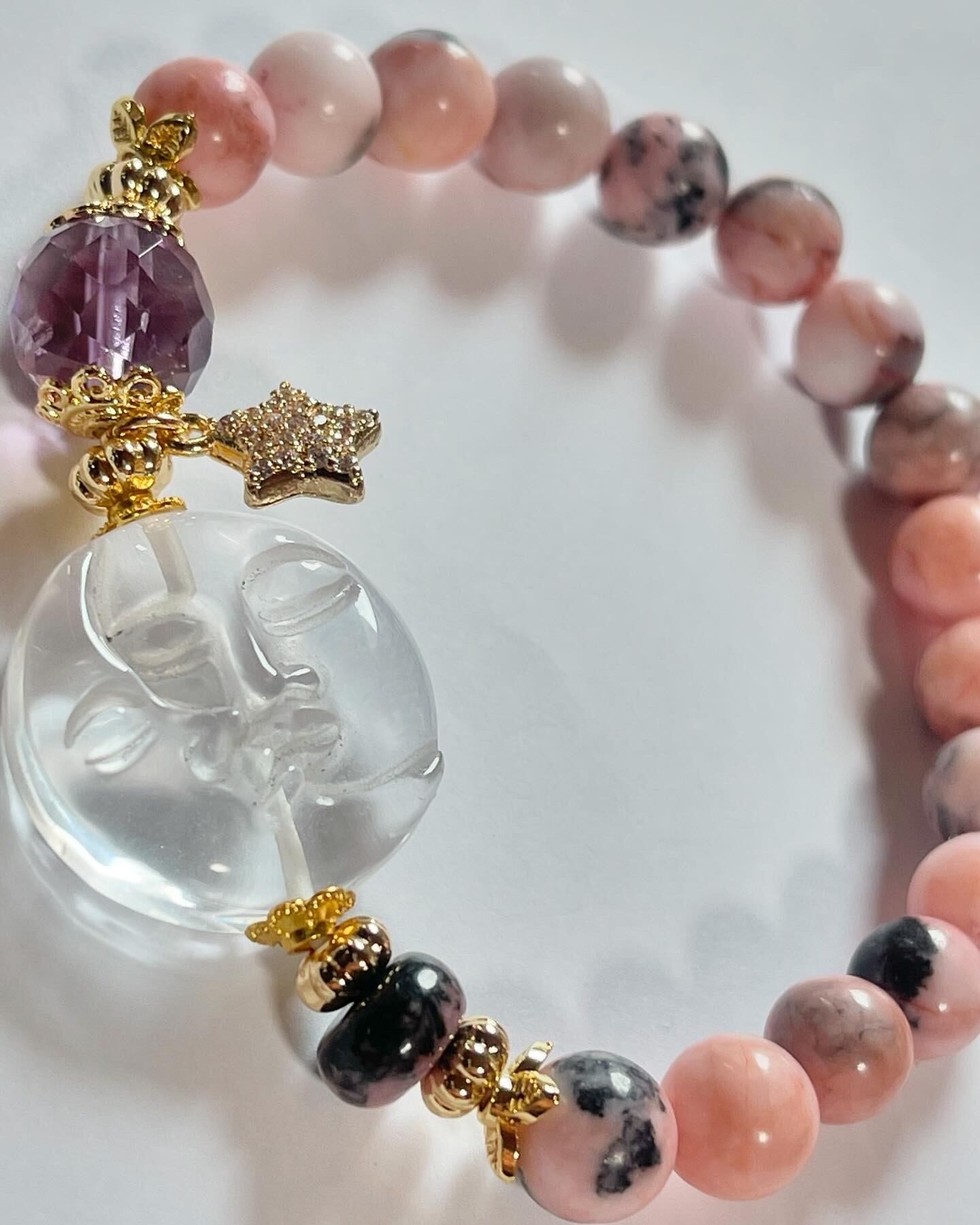 ✨✨新作✨✨ 陰陽バランスブレスレット 太陽 月 天然石ブレスレット アメジスト 水晶 ロードナイト