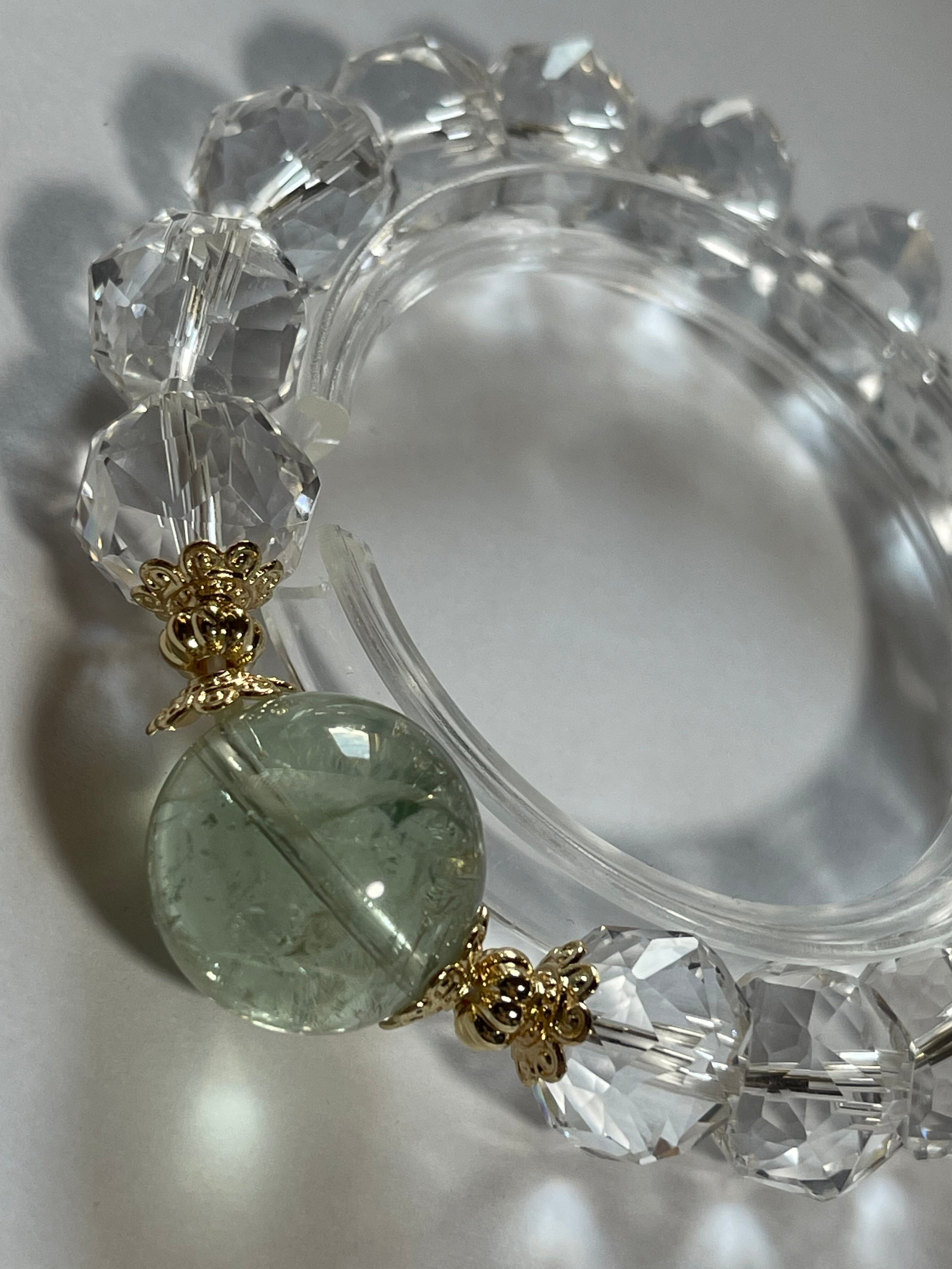 グリーンアメジスト 宝石カット水晶 水晶 天然石ブレスレット