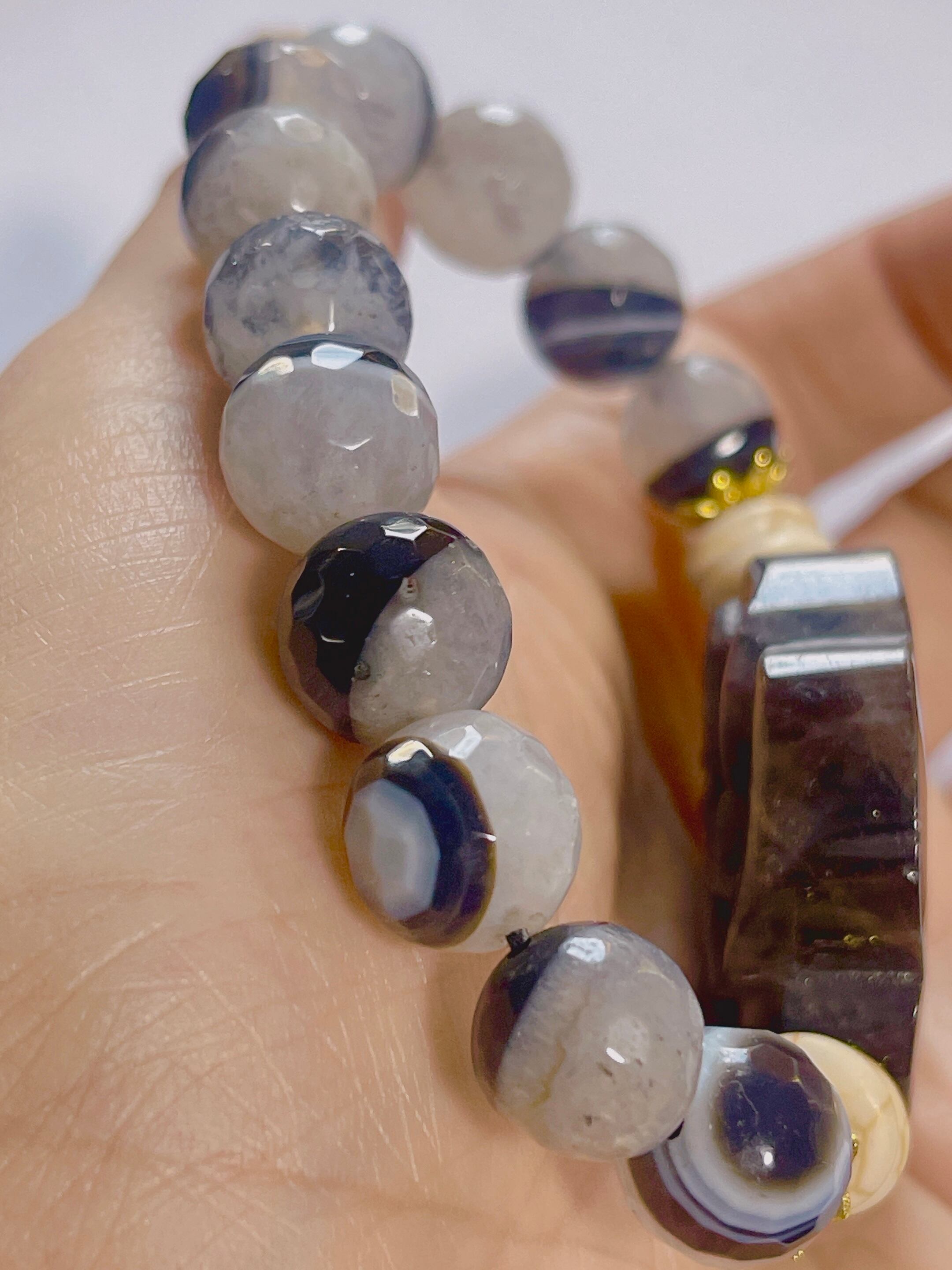 モリオン 水晶ジオード♡ 天眼石♡ 天然石ブレスレット パワーストーンブレスレット