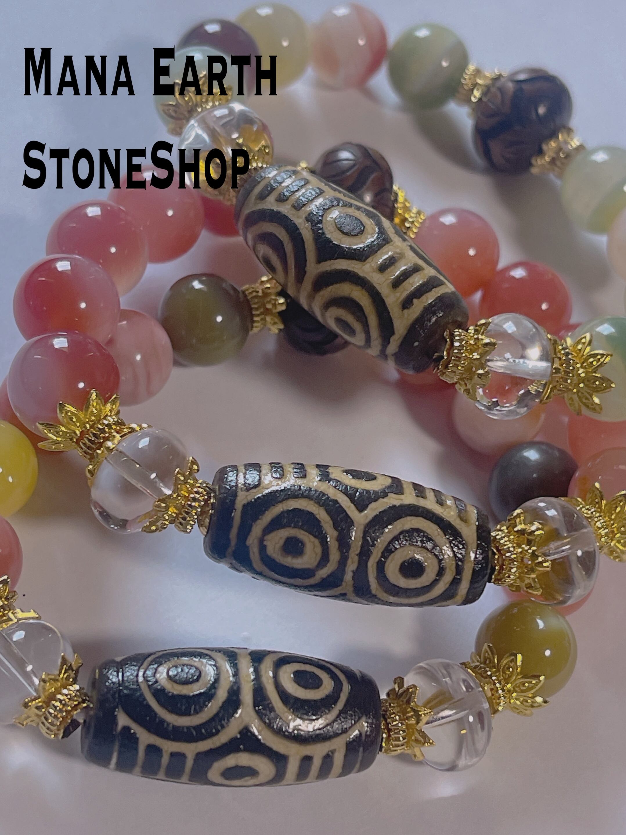 塩源瑪瑙と 龍眼天珠の