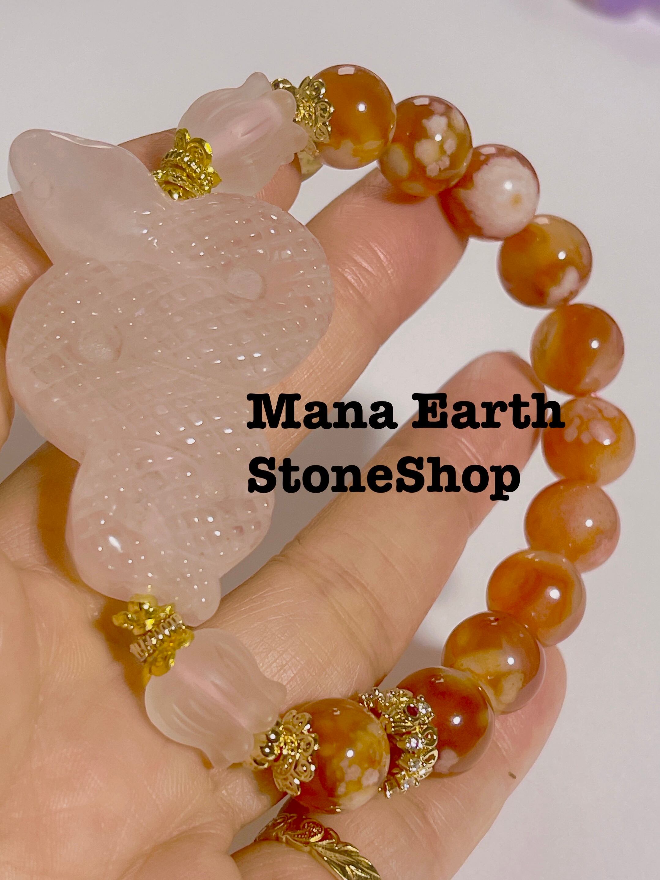 ローズクォーツ オレンジ桜瑪瑙 天然石ブレスレット