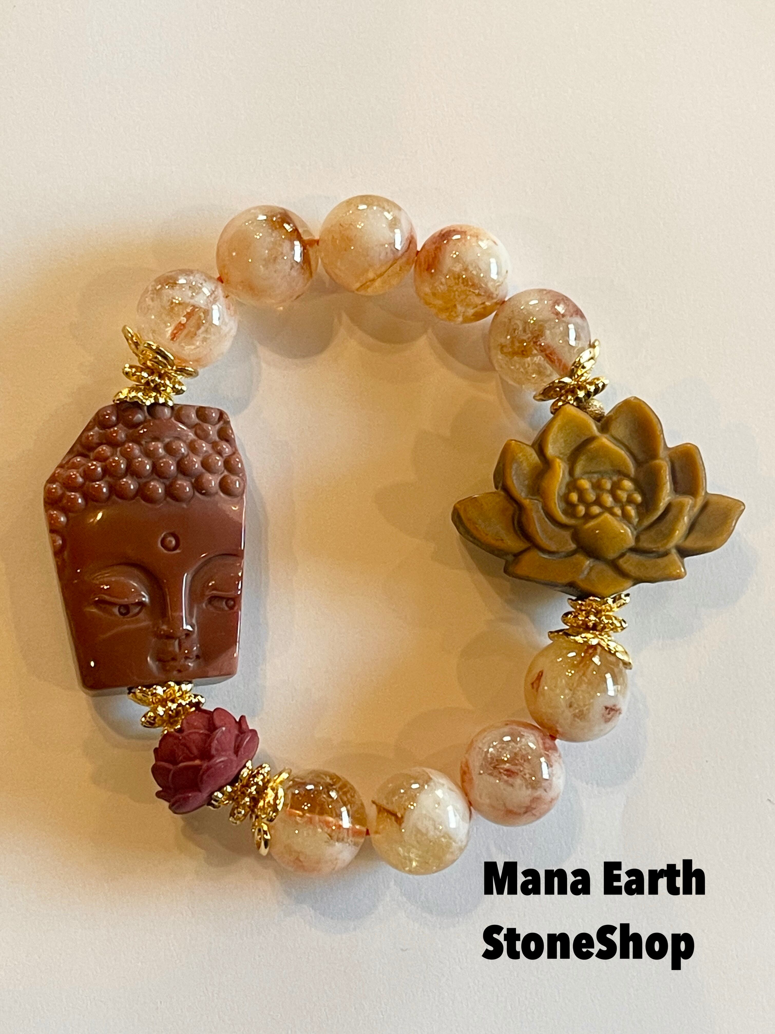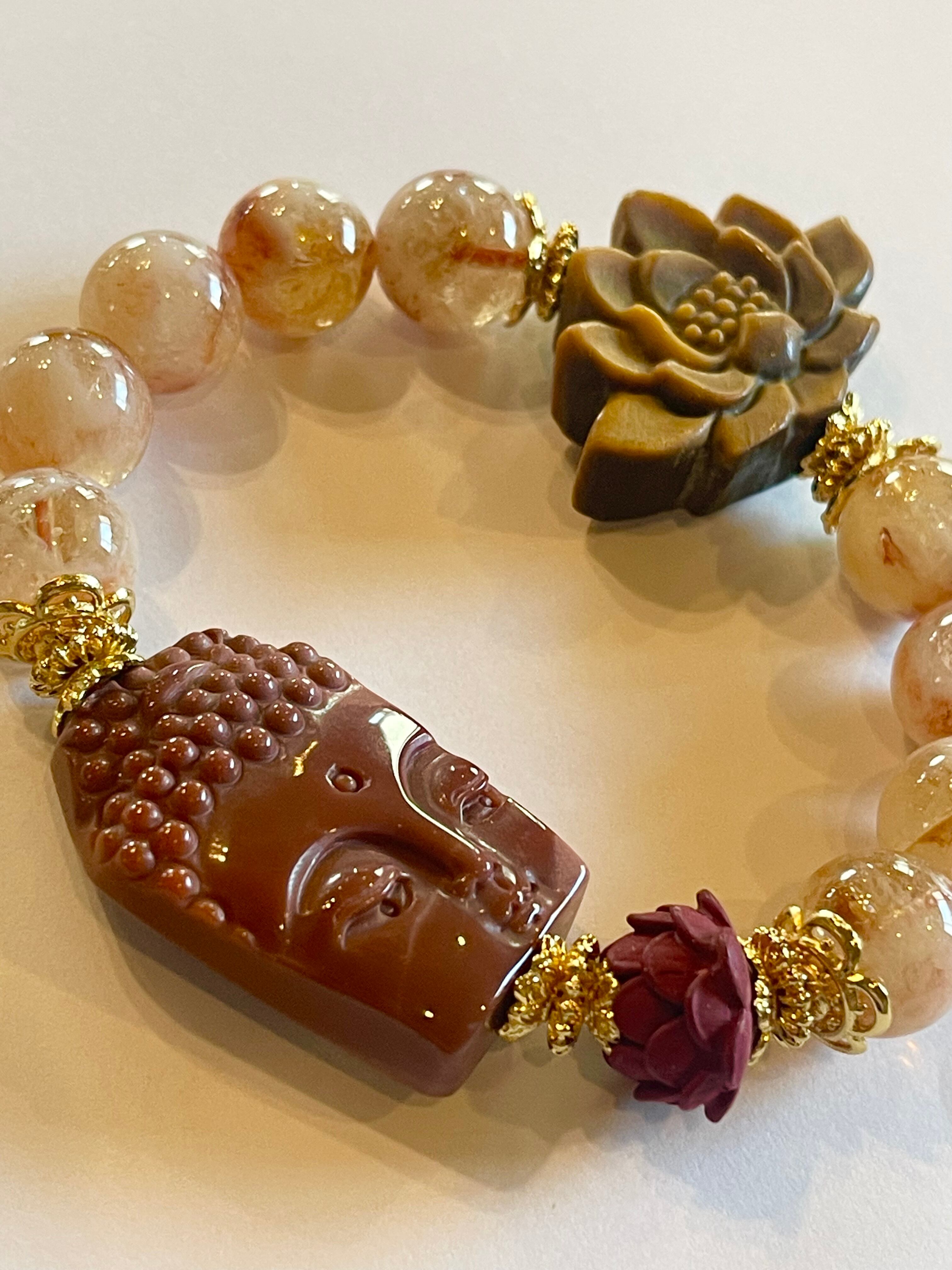 シトリン お釈迦様 タイガーアイ 蓮 シナバー アラシャン瑪瑙 天然石 パワーストーンブレスレット 天然石ブレスレット
