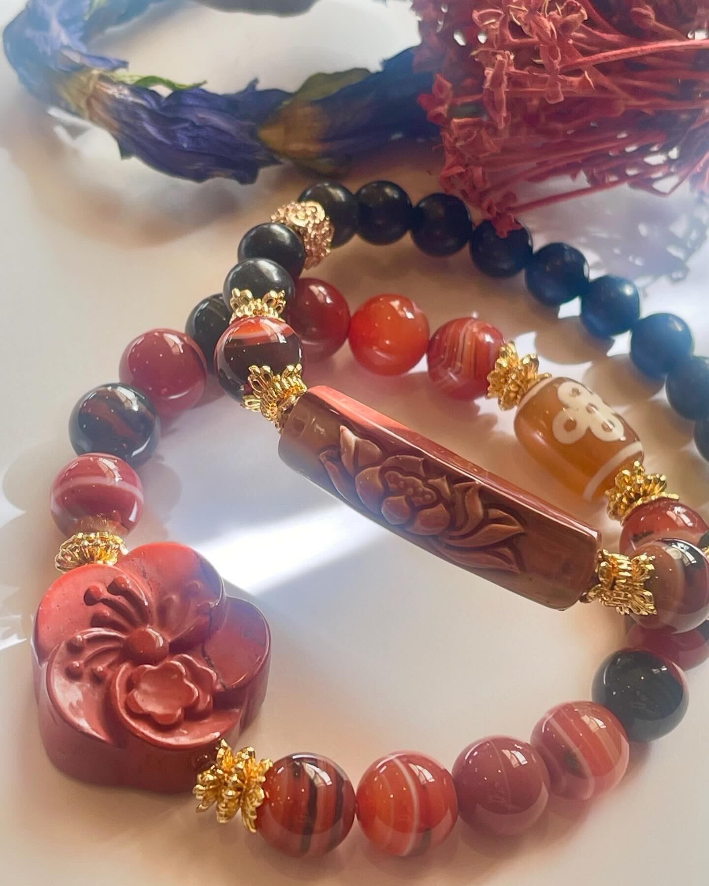 また、蓮の花の珍しい 天珠形の【アラシャン瑪瑙 3.6mm】には、