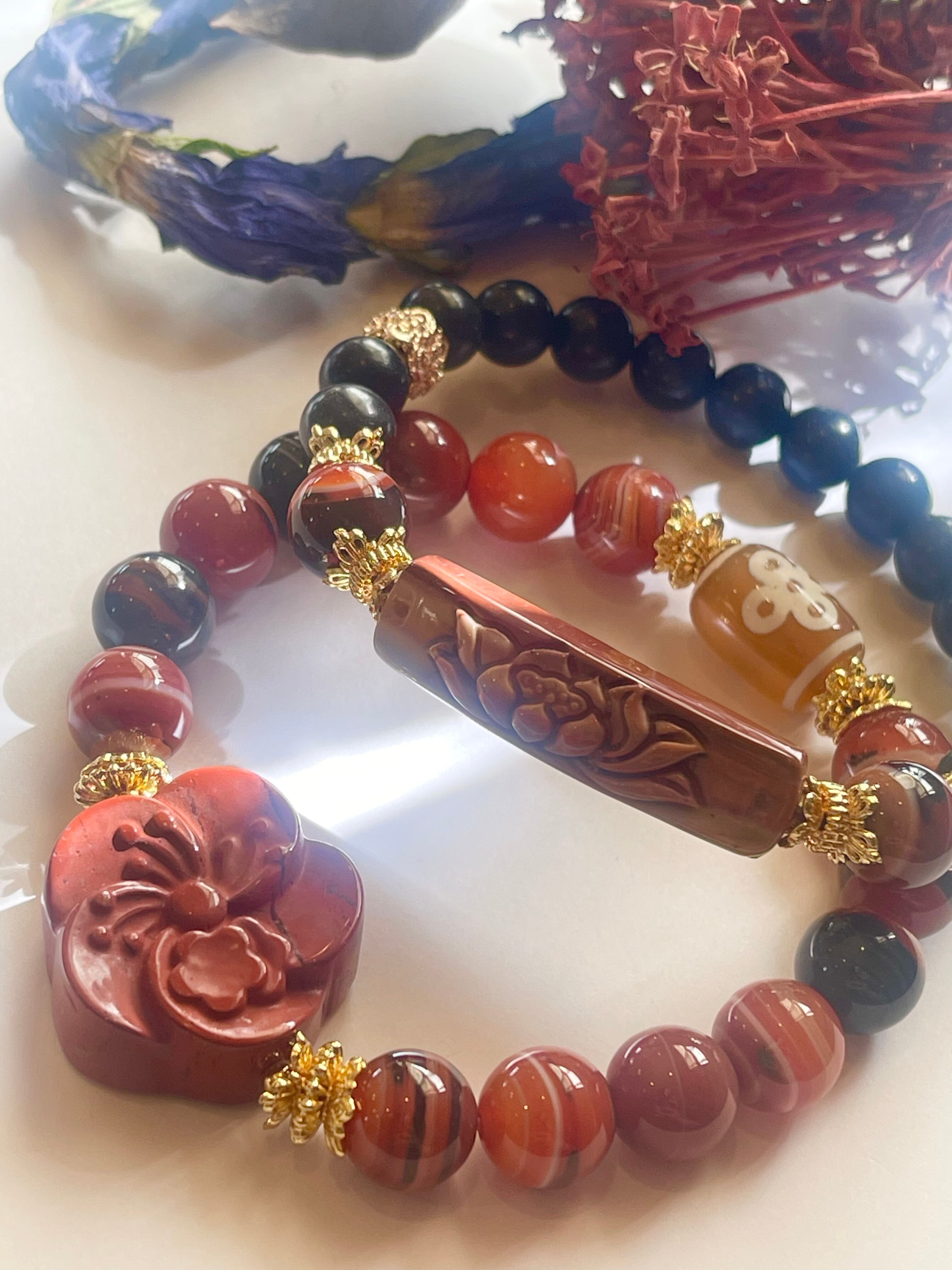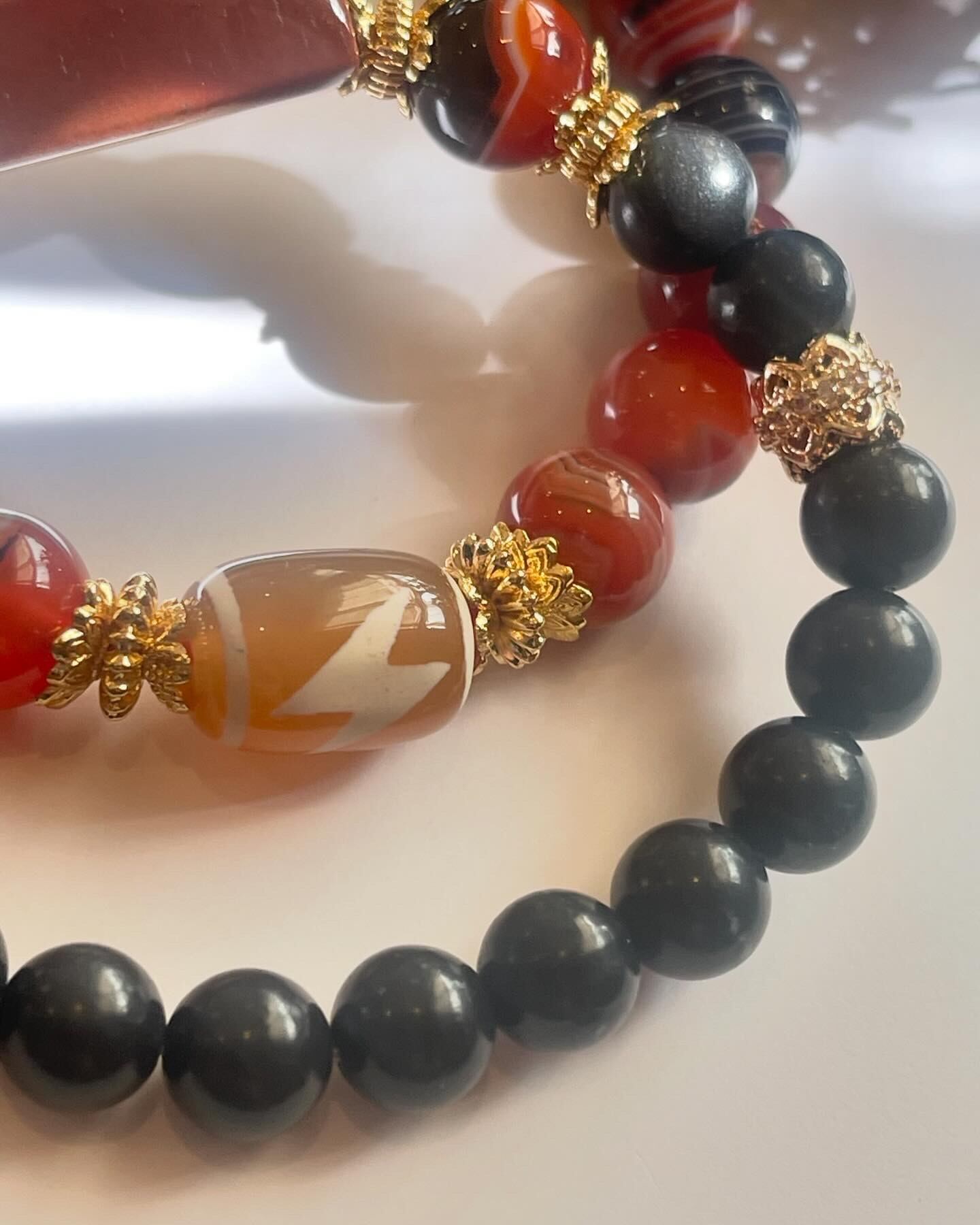 キリッとした中にもあたたかさのある、デザイン天珠ブレスレットの 2本セットです❤️❤️❤️